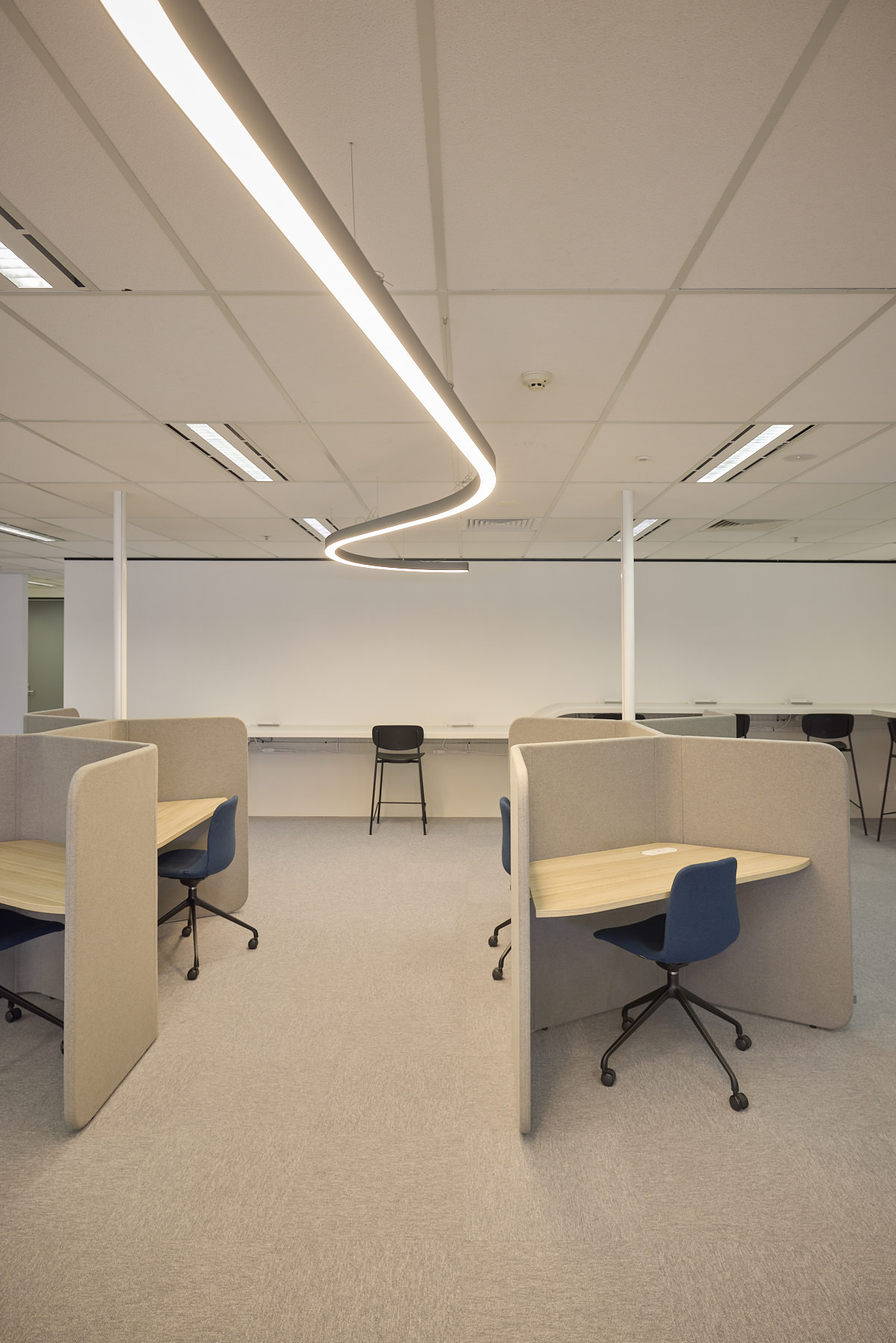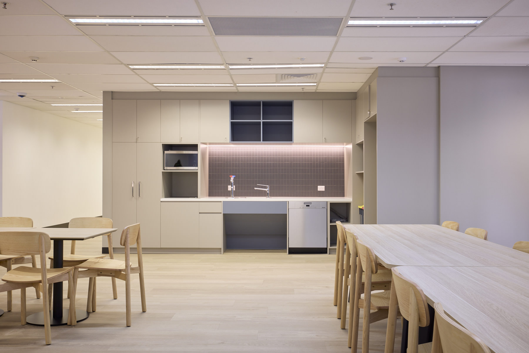 Our team stripped the floor back to bare bones, then rebuilt it with purpose. Four new teaching spaces with acoustically treated dividing walls, so sound stays where it should. New library, breakout area, reception. Full AV system that makes remote learning seamless. And feature lighting throughout that pulls it all together.